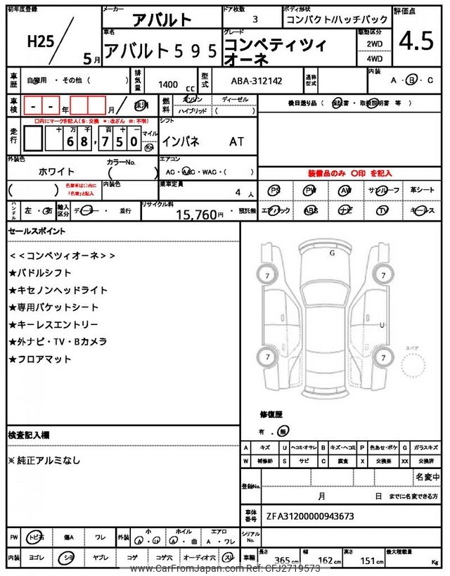 Abarth 595 2013 for sale in Zambia (Zmw. 194,448)