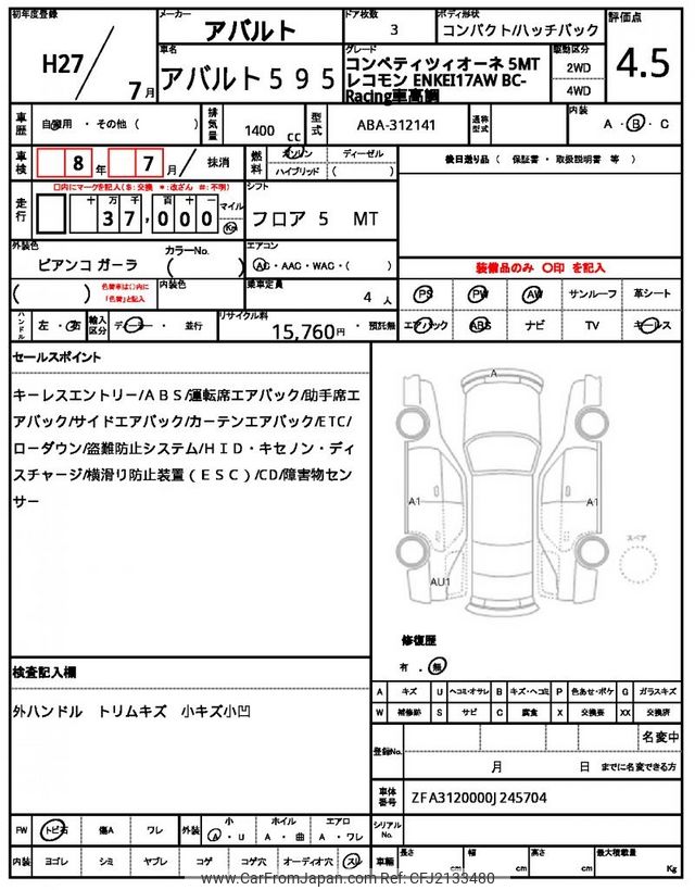 Abarth 595 2015 for sale in Zambia (Zmw. 289,289)