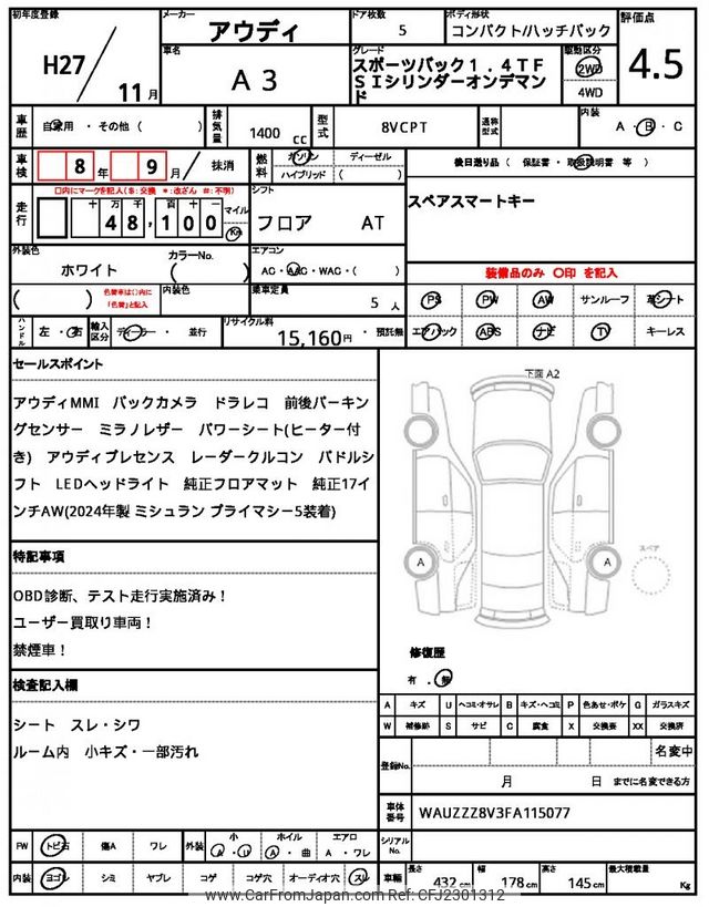 Audi A3 2015 for sale in Zambia (Zmw. 198,856)