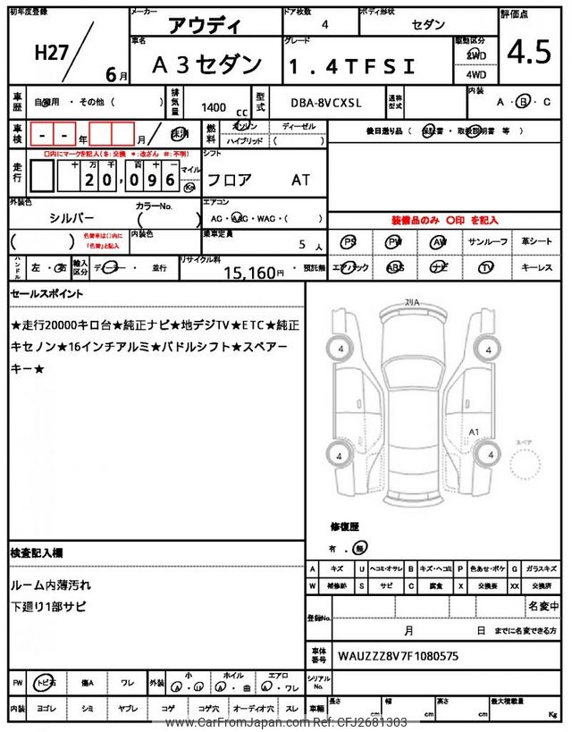 Audi A3 2015 for sale in Zambia (Zmw. 207,501)