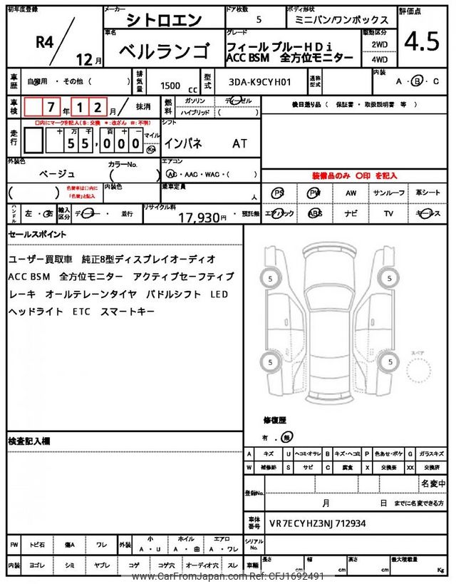 Citroen Berlingo 2022 for sale in Zambia (Zmw. 335,166)
