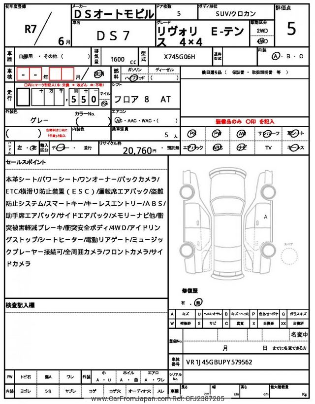 Citroen DS Automobiles DS7 Crossback 2025 for sale in Zambia (Zmw. 746,828)