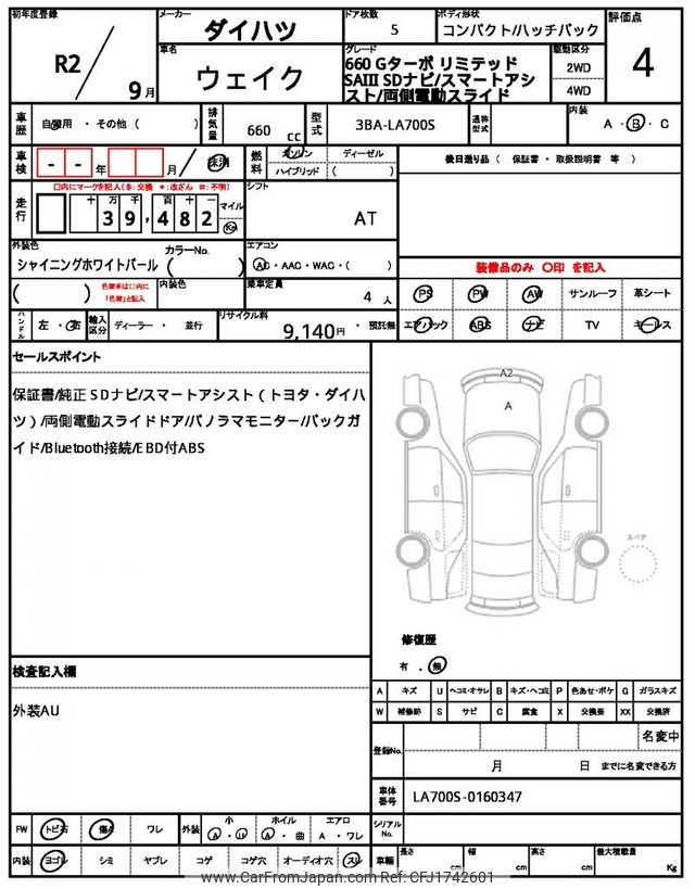 Daihatsu Wake 2020 for sale in Zambia (Zmw. 234,675)