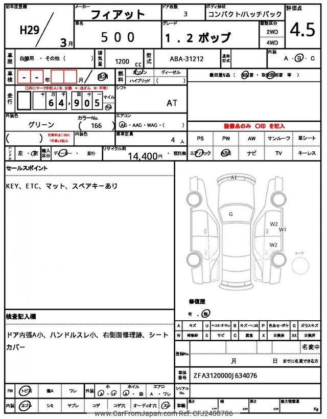 Fiat 500 2017 for sale in Zambia (Zmw. 133,259)