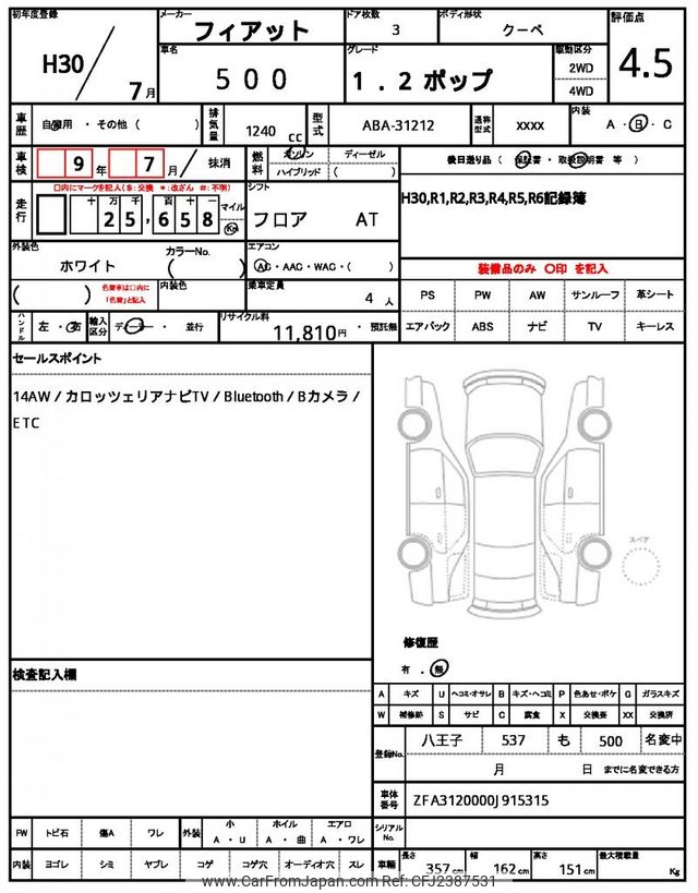 Fiat 500 2018 for sale in Zambia (Zmw. 196,284)