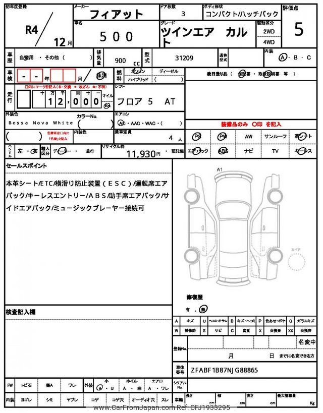 Fiat 500 2022 for sale in Zambia (Zmw. 392,302)