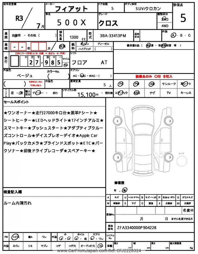 Fiat 500X 2021 for sale in Zambia (Zmw. 313,740)