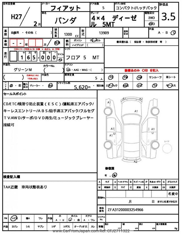 Fiat Panda 2015 for sale in Zambia (Zmw. 154,664)
