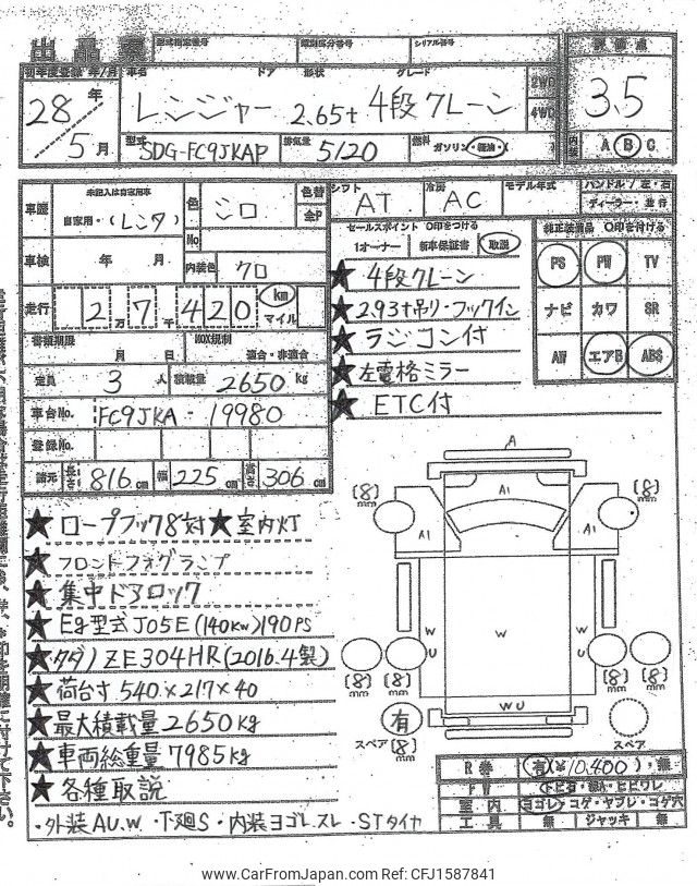 Hino Ranger 2016 for sale in Zambia (Zmw. 878,961)