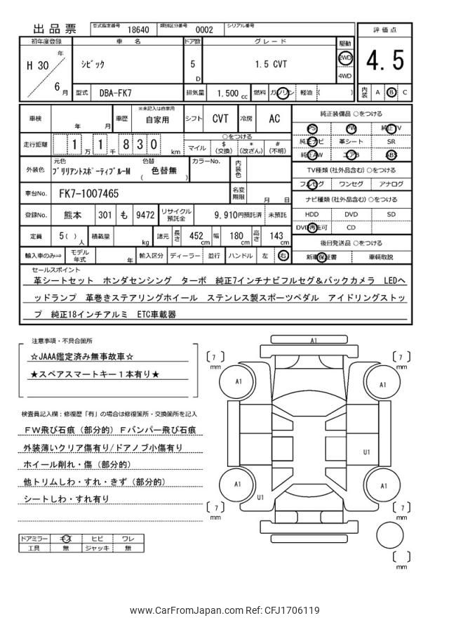 Honda Civic 2018 for sale in Zambia (Zmw. 341,627)