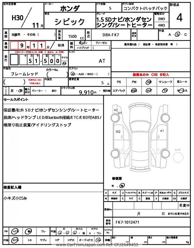 Honda Civic 2018 for sale in Zambia (Zmw. 324,015)
