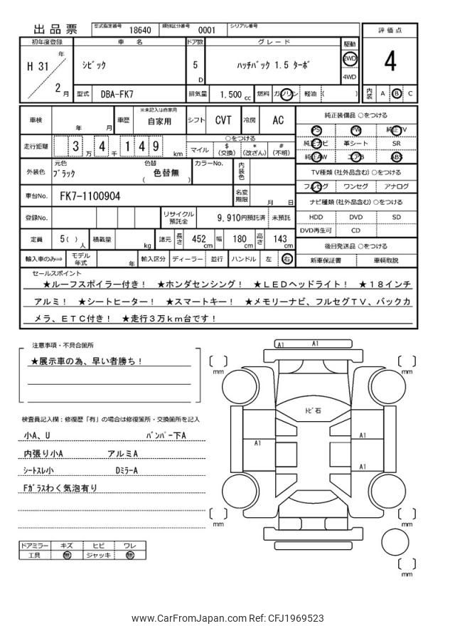 Honda Civic 2019 for sale in Zambia (Zmw. 371,785)