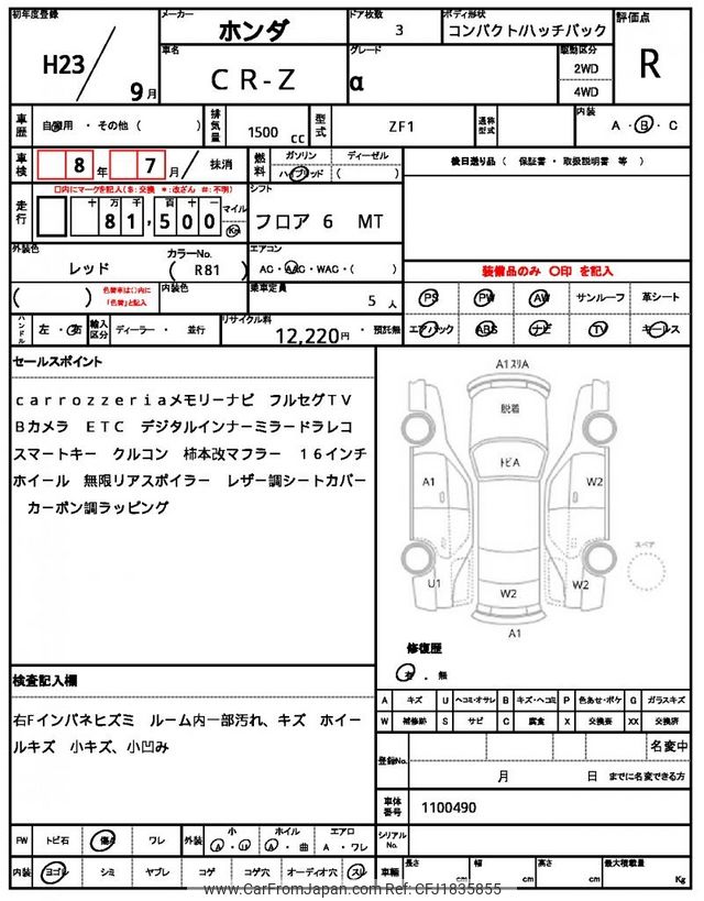 Honda CR-Z 2011 for sale in Zambia (Zmw. 157,476)