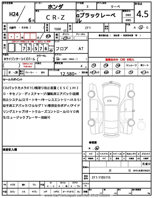 Honda CR-Z 2012 for sale in Zambia (Zmw. 126,767)