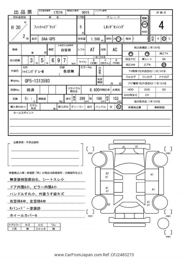 Honda Fit Hybrid 2018 for sale in Zambia (Zmw. 206,756)