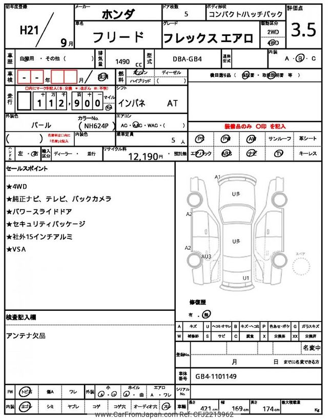 Honda Freed 2009 for sale in Zambia (Zmw. 83,957)