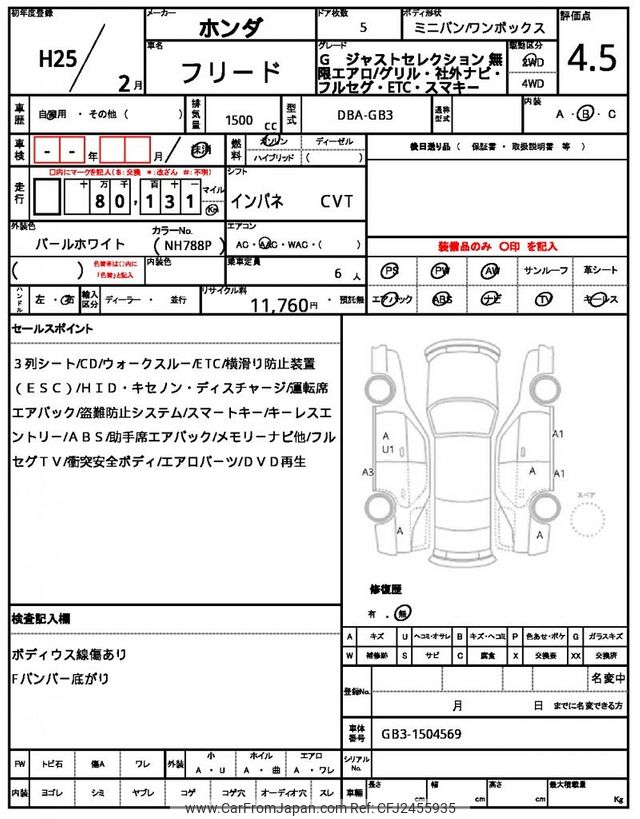 Honda Freed 2013 for sale in Zambia (Zmw. 200,883)