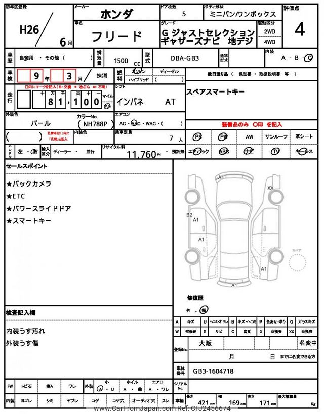 Honda Freed 2014 for sale in Zambia (Zmw. 173,809)