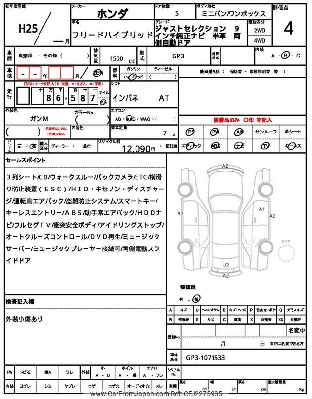 Honda Freed Hybrid 2013 for sale in Zambia (Zmw. 135,420)