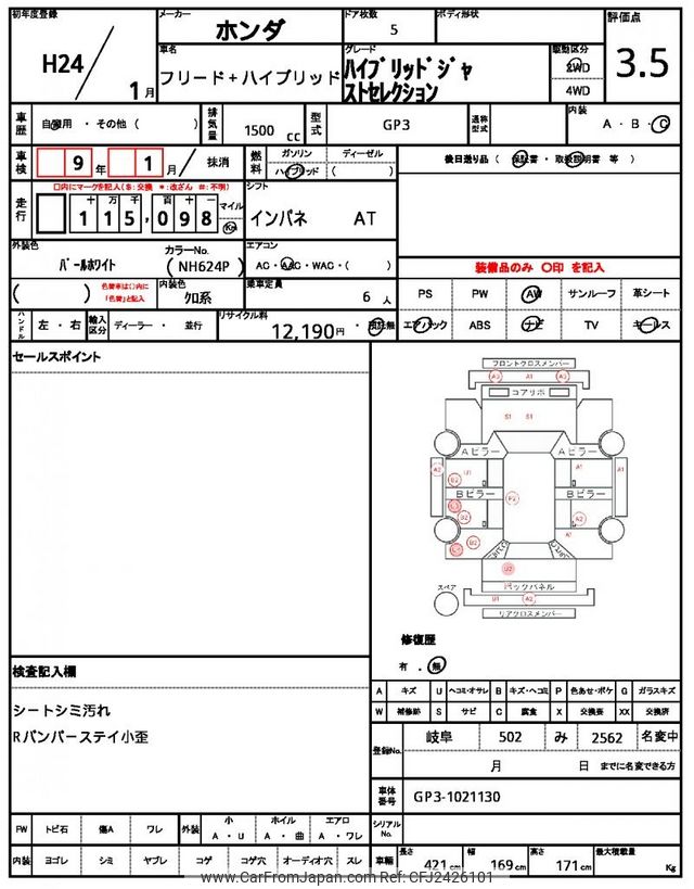 Honda Freed Plus 2012 for sale in Zambia (Zmw. 105,359)