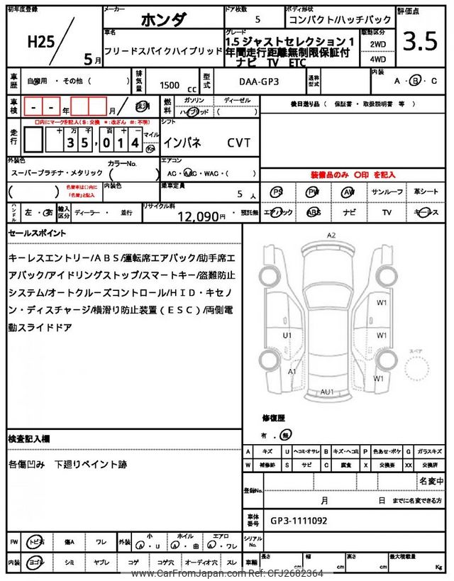 Honda Freed Spike Hybrid 2013 for sale in Zambia (Zmw. 161,891)