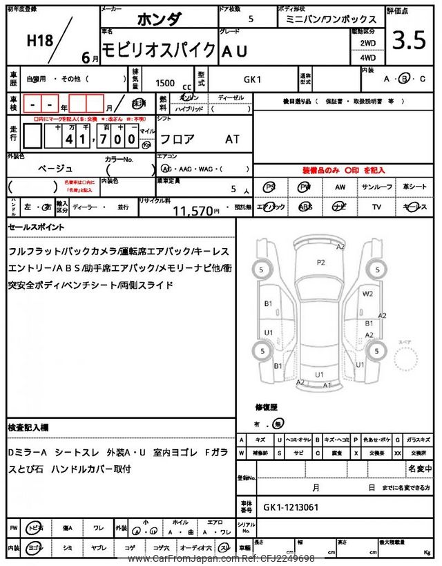 Honda Mobilio Spike 2006 for sale in Zambia (Zmw. 126,633)