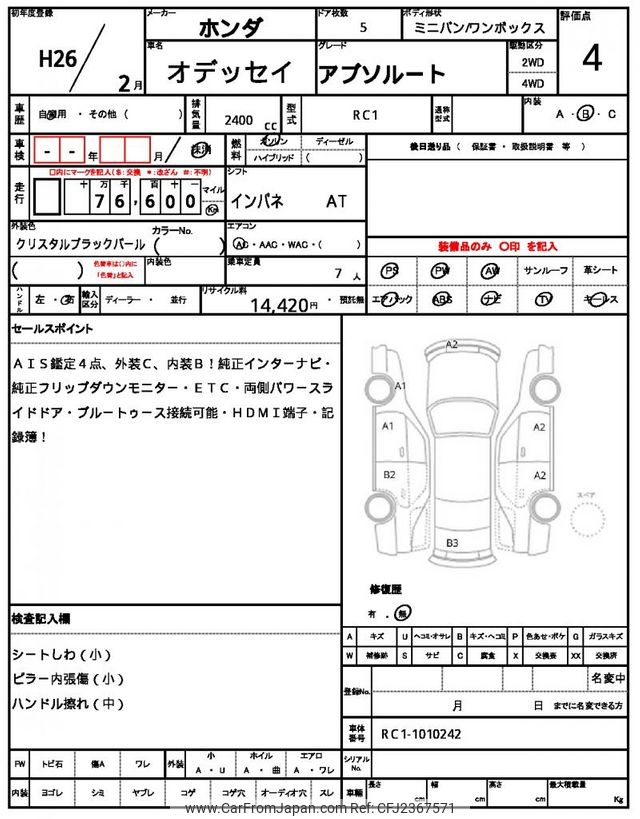Honda Odyssey 2014 for sale in Zambia (Zmw. 214,331)