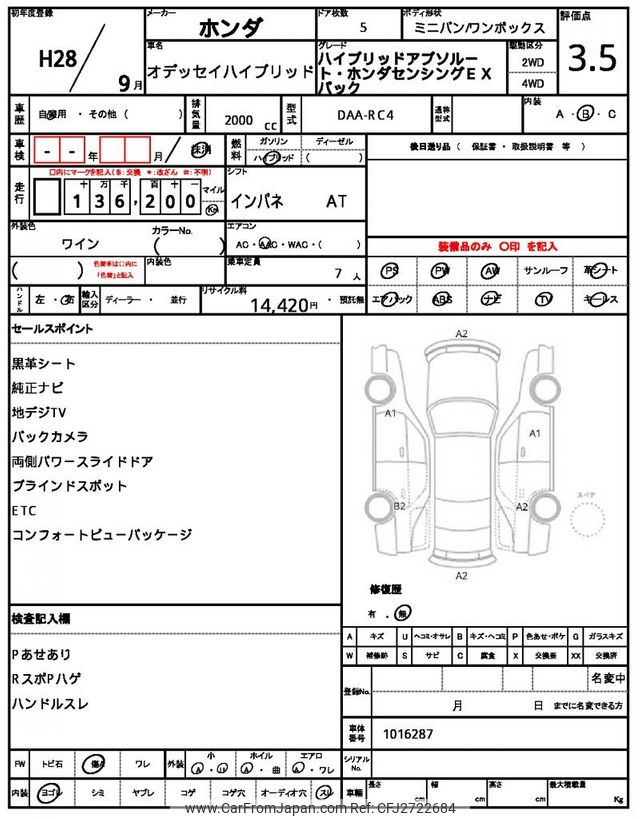 Honda Odyssey 2016 for sale in Zambia (Zmw. 241,968)