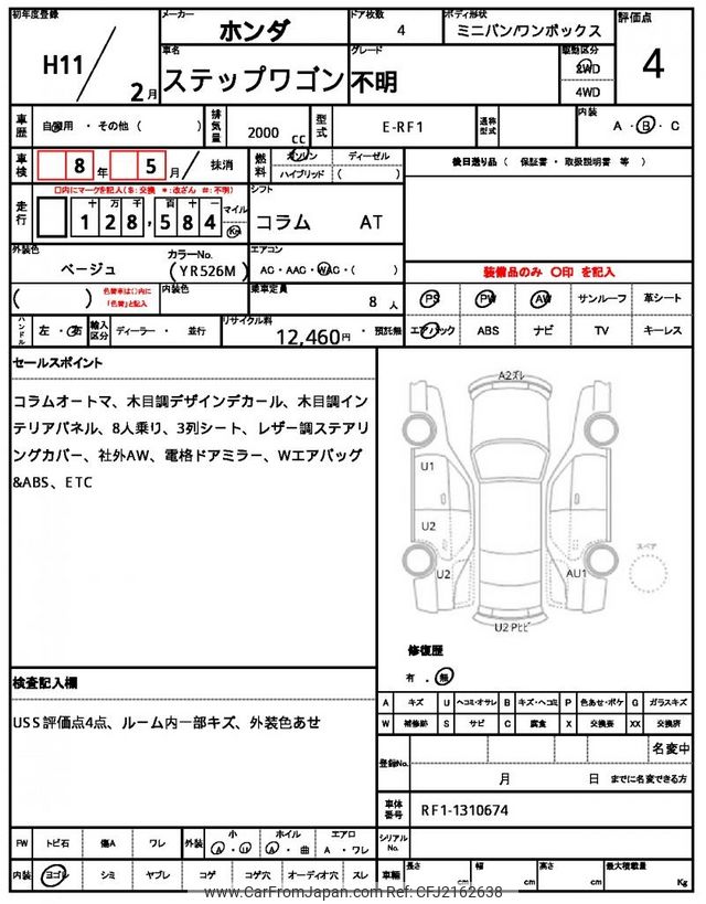 Honda stepwagon 1999 for sale in Zambia (Zmw. 163,262)
