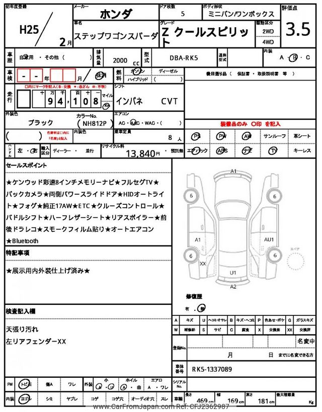Honda Stepwagon Spada 2013 for sale in Zambia (Zmw. 176,933)
