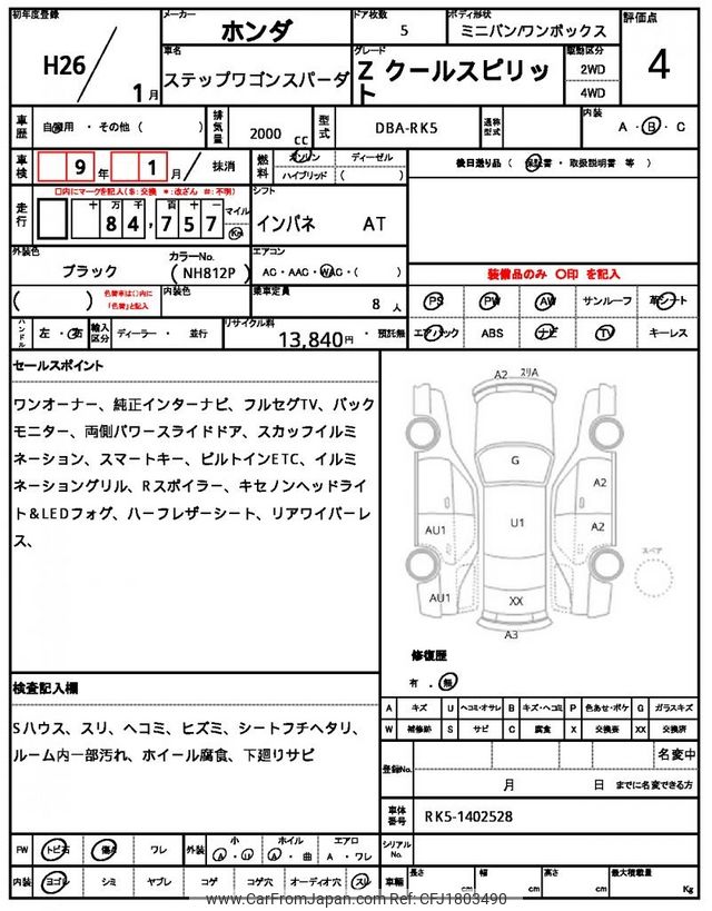 Honda Stepwagon Spada 2014 for sale in Zambia (Zmw. 198,272)