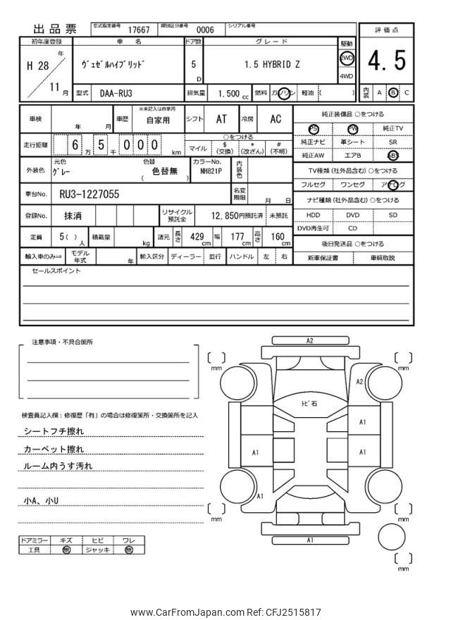 Honda VEZEL 2016 for sale in Zambia (Zmw. 255,326)