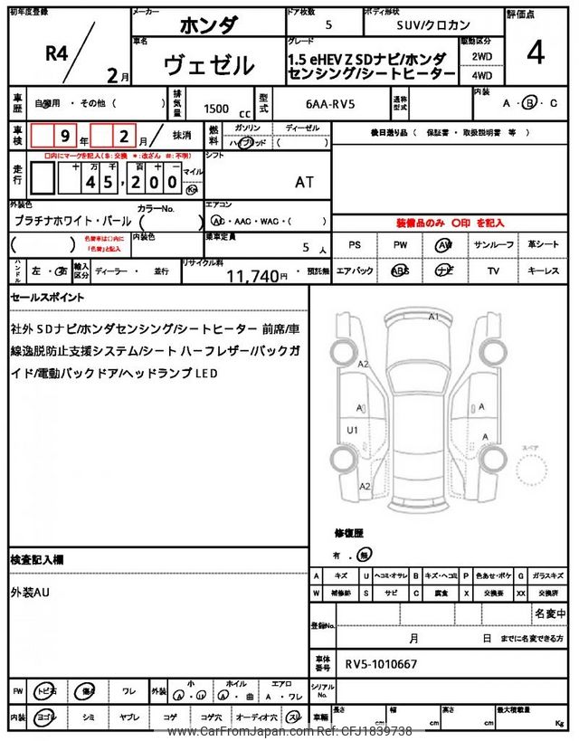 Honda VEZEL 2022 for sale in Zambia (Zmw. 457,618)