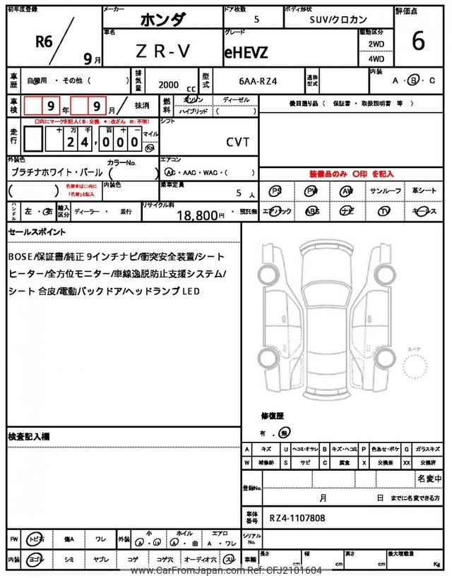 Honda ZR-V 2024 for sale in Zambia (Zmw. 548,641)