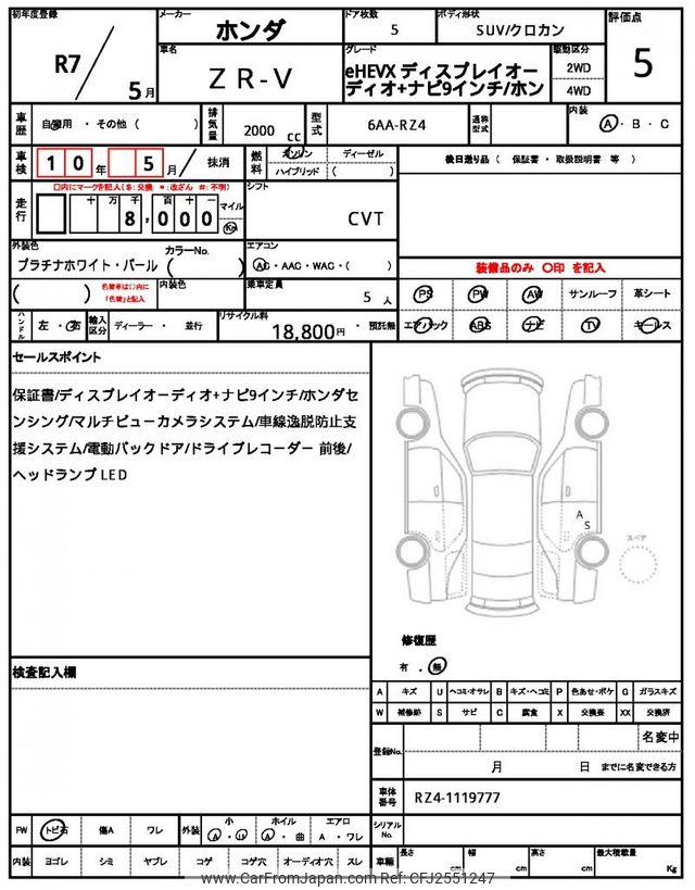 Honda ZR-V 2025 for sale in Zambia (Zmw. 499,932)