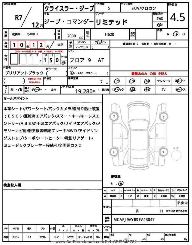 Jeep Commander 2025 for sale in Zambia (Zmw. 768,365)