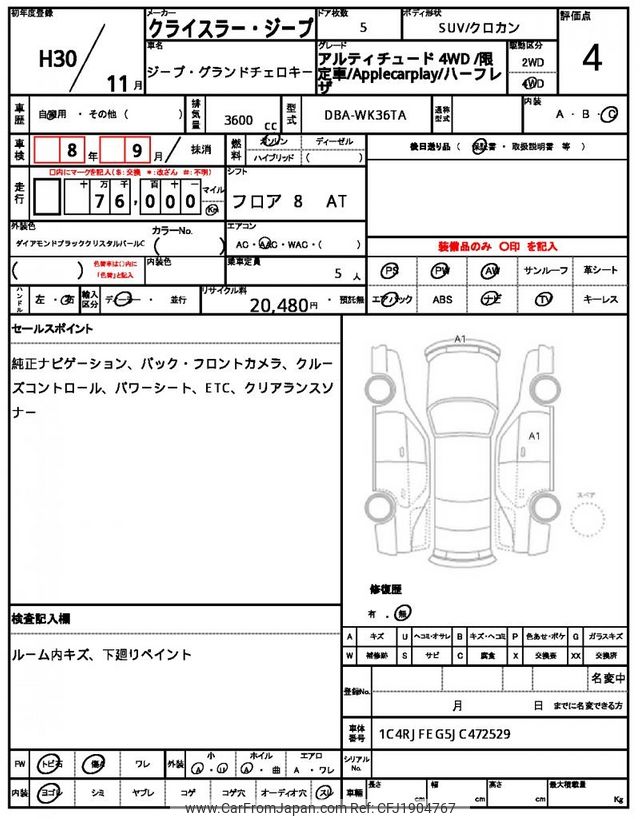 Jeep Grand Cherokee 2018 for sale in Zambia (Zmw. 395,093)