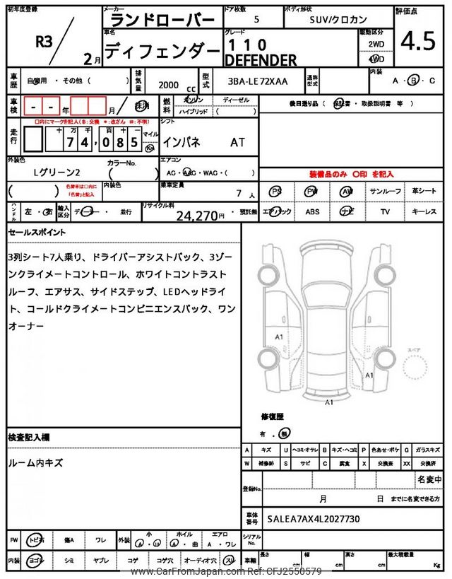 Land Rover Defender 2021 for sale in Zambia (Zmw. 792,286)