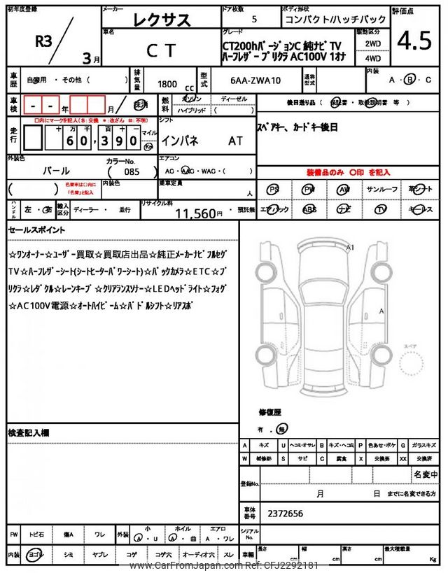 Lexus CT 2021 for sale in Zambia (Zmw. 420,104)