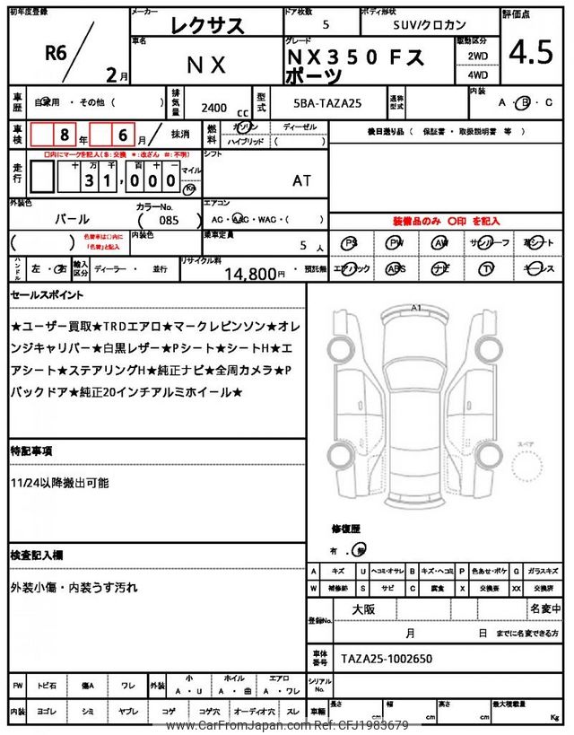 Lexus NX 2024 for sale in Zambia (Zmw. 931,458)