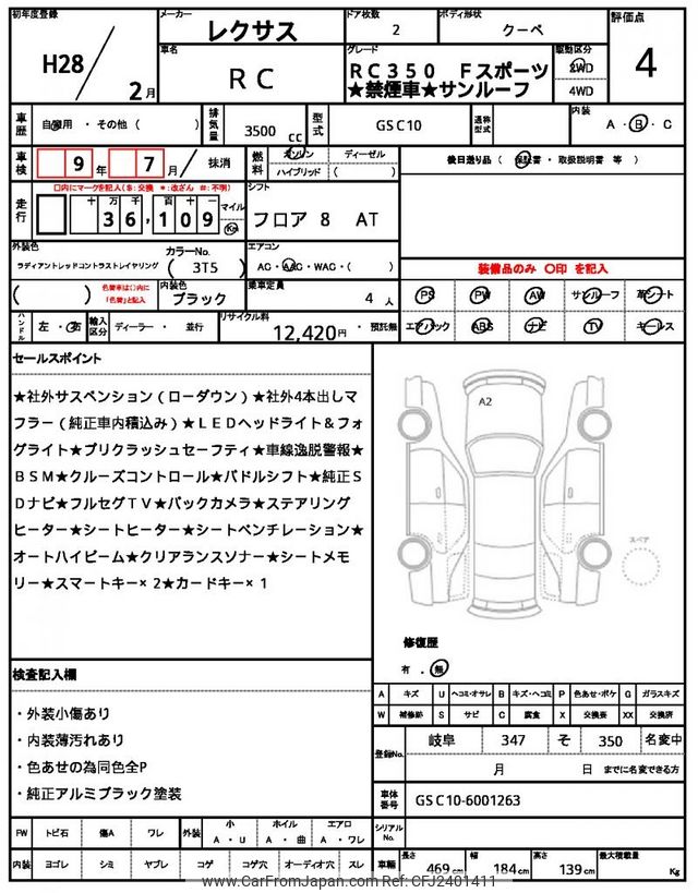 Lexus RC 2016 for sale in Zambia (Zmw. 427,036)