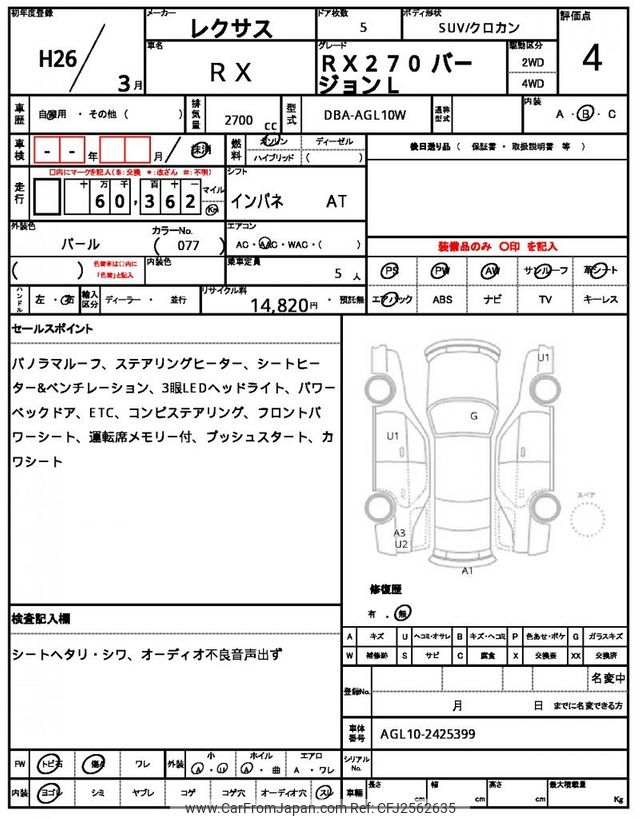 Lexus RX 2014 for sale in Zambia (Zmw. 251,468)