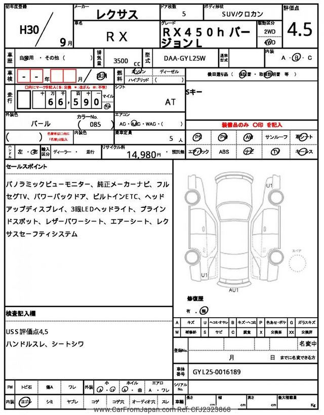 Lexus RX 2018 for sale in Zambia (Zmw. 574,436)