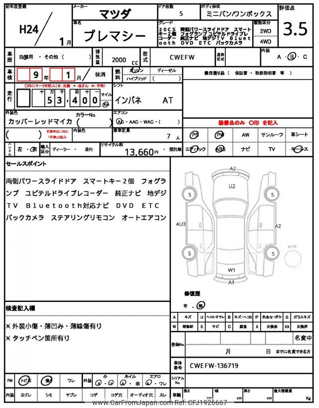 Mazda Premacy 2012 for sale in Zambia (Zmw. 124,677)