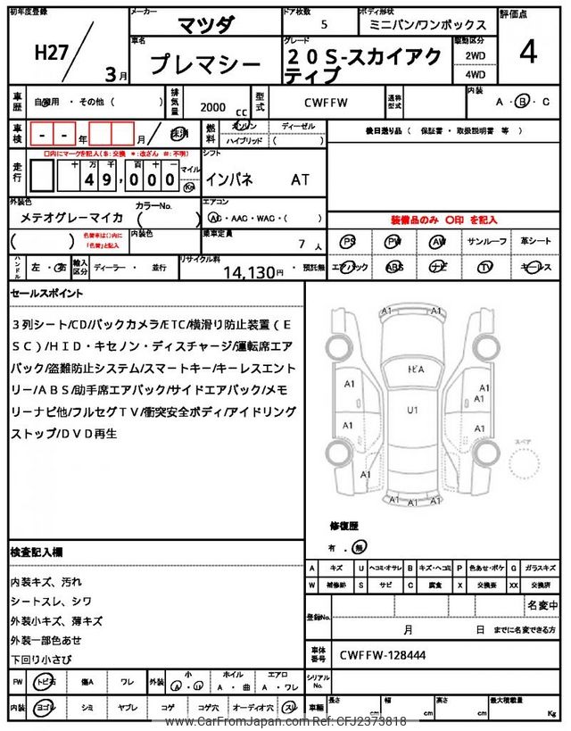 Mazda Premacy 2015 for sale in Zambia (Zmw. 173,737)