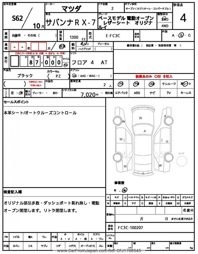 Mazda Savanna RX-7 1987 for sale in Zambia (Zmw. 386,600)