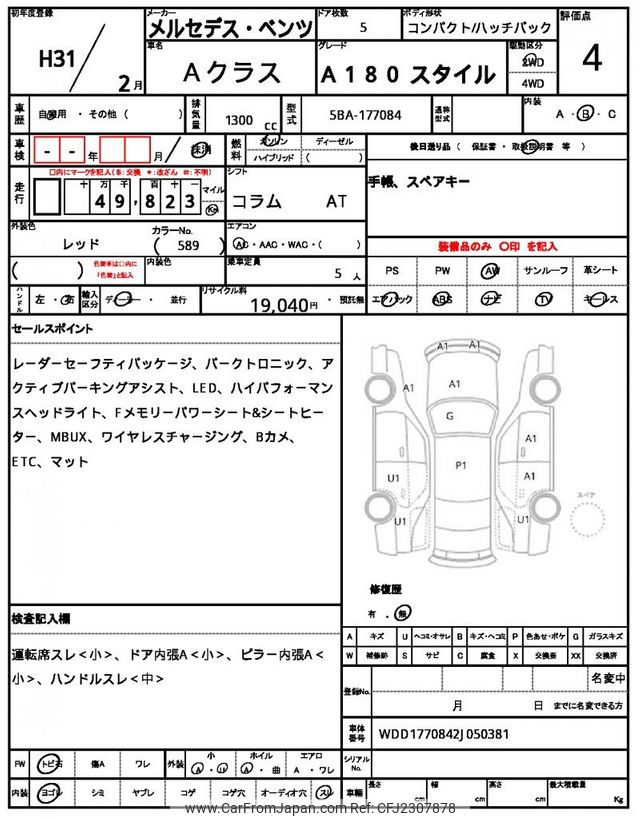Mercedes-Benz A-Class 2019 for sale in Zambia (Zmw. 259,231)