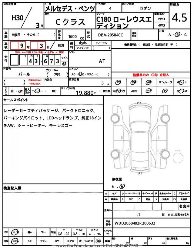 Mercedes-Benz C-Class 2018 for sale in Zambia (Zmw. 406,271)