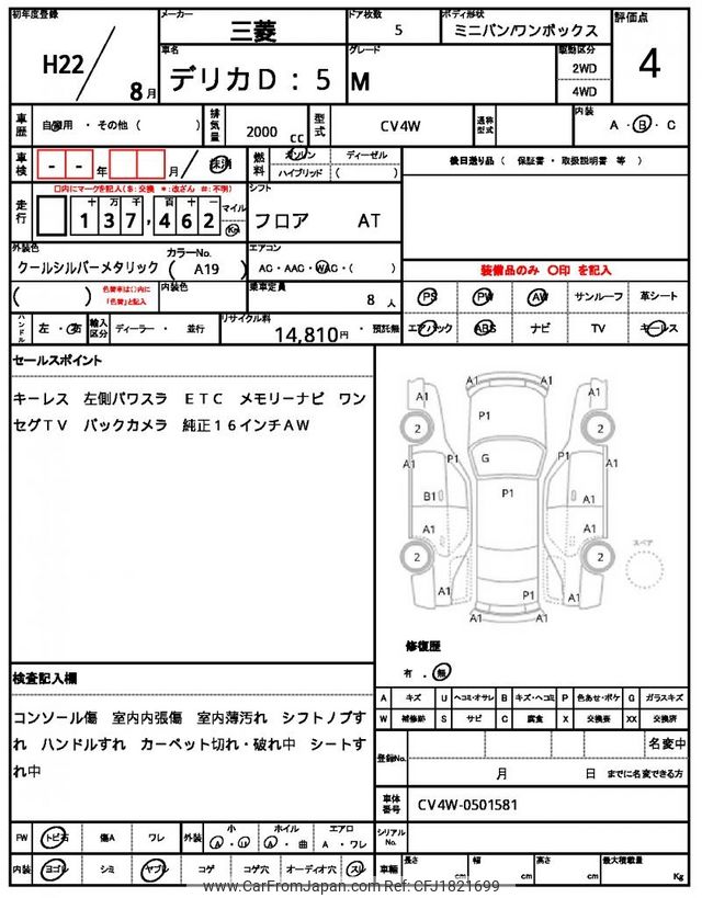 Mitsubishi Delica D5 2010 for sale in Zambia (Zmw. 125,872)