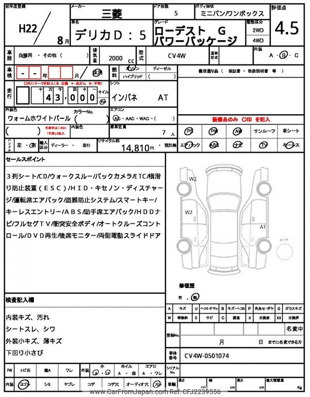 Mitsubishi Delica D5 2010 for sale in Zambia (Zmw. 194,324)